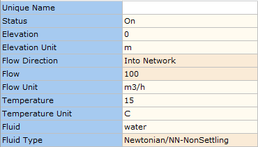 The cooling water is to flow through the heat exchangers and the design system inlet temperature will be 15°C. The design temperature rise of the cooling water across each heat exchanger is 30°C. The elevation of all the elements in this model is zero. The design duty pressure rise for this system is also known, 2.5 bar.