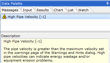 Figure 2.1.7 shows we have one warning message for the pipe indicating we have a high flow velocity.