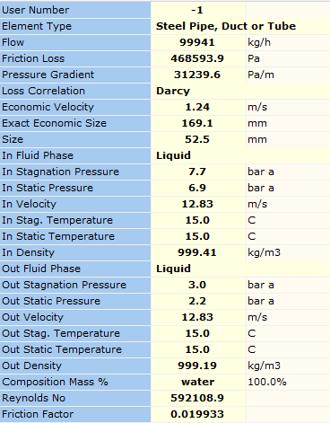 When we solve this system, FluidFlow calculates a Kv of 165.088 m3/h/bar whereas the hand calculation notes a Cv value of 165 m3/h/bar. The results are almost identical.