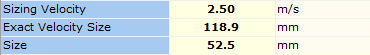 If you proceed with Economic Velocity as the Sizing Model, the software will determine the Exact Economic Size corresponding to the economic velocity which is automatically calculated by the software. This information can be viewed in the Results tab of the Data Palette.