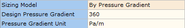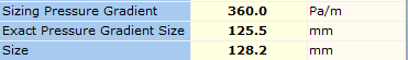 Choosing By Pressure Gradient allows you to set the design pressure gradient for your pipes. When you calculate your piping system, you will see in your results the Exact Pressure Gradient Size which is the exact pipe diameter required based on your defined gradient. Figure 2.3.2 shows the results provided when using this pipe sizing approach (based on the previous economic sizing example case and a design pressure gradient of 360 Pa/m).