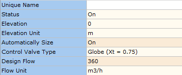 Figure 3.1.4: Control Valve – Input Data.