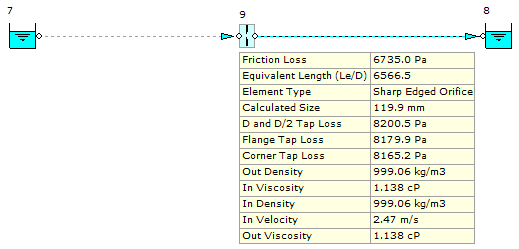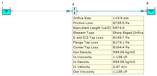 Figure 5.1.1 shows the model of the system developed in FluidFlow. The orifice plate has been automatically sized based on the design flow rate noted of 0.0279 m3/s.