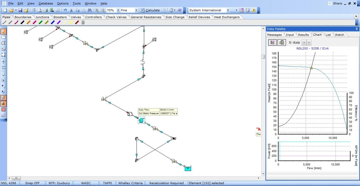 The design was developed further and from the detailed analysis, it was observed from using FluidFlow that the existing pump was capable of meeting the requirements of the upgraded installation.