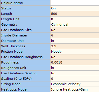 Figure 78. Pipe Data Entry.