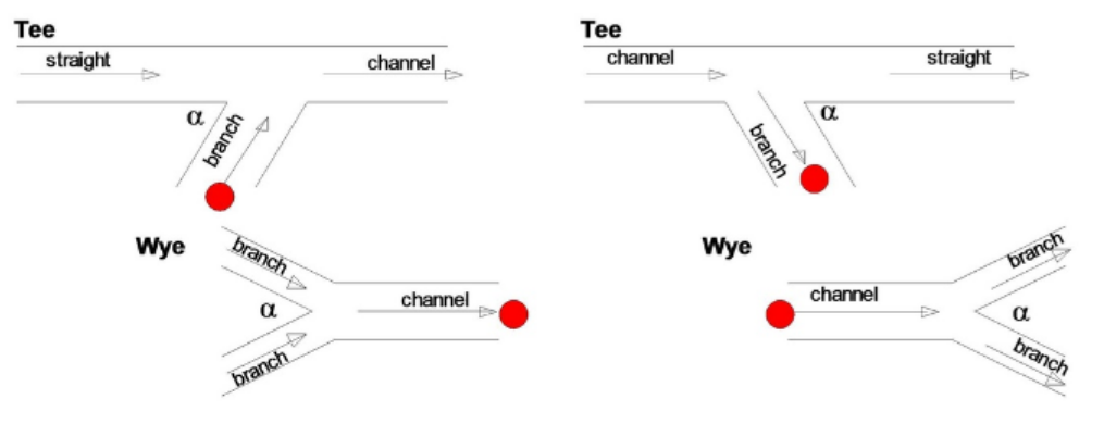 Figure 3. Converging (left) and Diverging (right) tees and wyes.